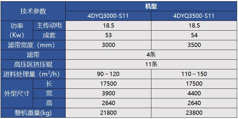 總長17.5m,帶寬3-3.5米,配置低高2個獨立壓榨脫水區(qū),高壓區(qū)配置擠壓輥7-13條,加長低壓脫水段,污泥經(jīng)2次壓榨脫水,泥餅含水率比傳統(tǒng)污泥脫水設(shè)備低20%,產(chǎn)量高30%;處理量特別大,適用于特大型規(guī)模難脫水的泥漿快速深度脫水,適用于對脫水要求更高的用戶使用。