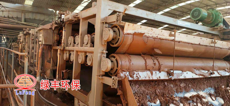 尾礦干排,選礦廢水處理,礦山污泥脫水機(jī)——綠豐新型多輥高速脫水機(jī),業(yè)主指定機(jī)型,處理量大,產(chǎn)量高,泥餅含水率比傳統(tǒng)機(jī)型再降7%,投資成本再省30%,每小時(shí)處理量達(dá)200 m3/h ,18米長(zhǎng),4條濾帶+11條擠壓輥+2組對(duì)壓